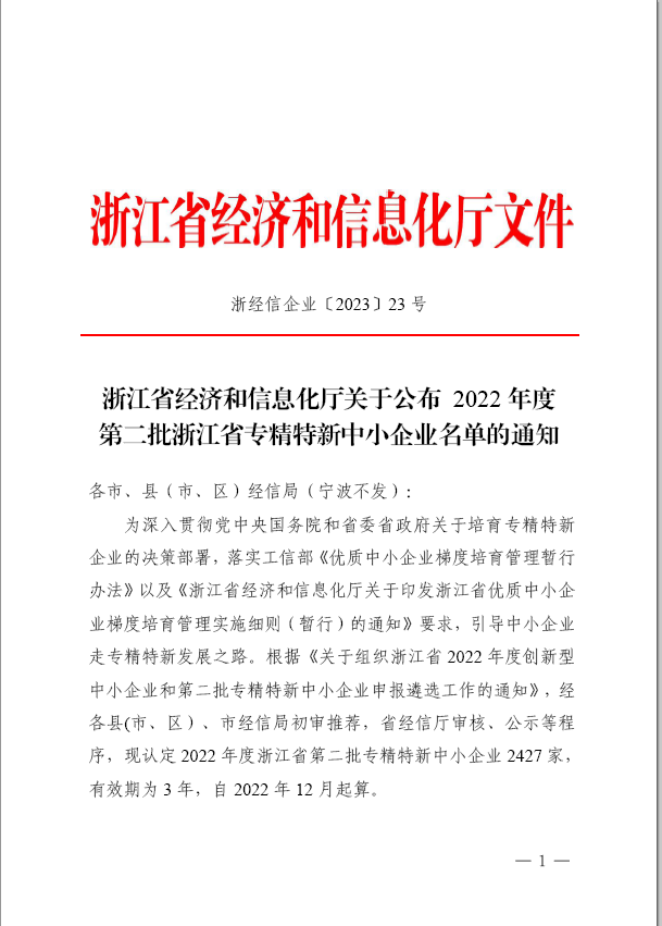 为深入贯彻党中央国务院和省委省政府培育专精特新的决策部署,浙江省经济和信息化厅在2022年11月组织开展了2022年度省专精特新中小企业认定工作。经过3个月区、市、省各级专家组的评审,从全省申报的6200余家企业中评选出了2427家企业,其中杭州市505家认定为2022年度浙江省专精特新中小企业。浙江科维节能技术股份有限公司凭借较高的行业地位、优秀的创新能力及专业的技术能力入选。浙江省经济和信息化厅是这样评价的:“省级专精特新中小企业创新能力强、质量好,是优质中小企业的中坚力量。请各市、县(市、区)经信部门加大培育力度,整合资源、精准施策、重点服务、推动省级专精特新中小企业高质量发展。”科维将继续秉承公司的经营理念——科技节能 创造共赢,用专业的技术能力、丰富的项目实施经验为客户深挖节能潜力,为社会的节能减排做出贡献。