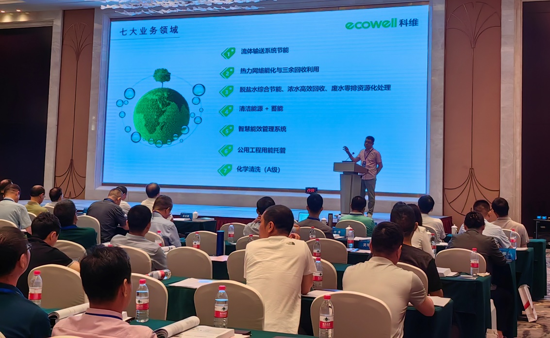 随后,我公司林永辉董事长上台向与会嘉宾介绍了公司流体输送系统节能、热力网络能量系统优化与三余回收利用、脱盐水综合节能、智慧能效管理系统等七大主要技术方向。其中重点介绍了公司的工业冷却水循环水系统节能技术和氨冷冻能效提升技术,这两个技术已在陕西陕化煤化工集团有限公司成功应用,并所取得显著成效。